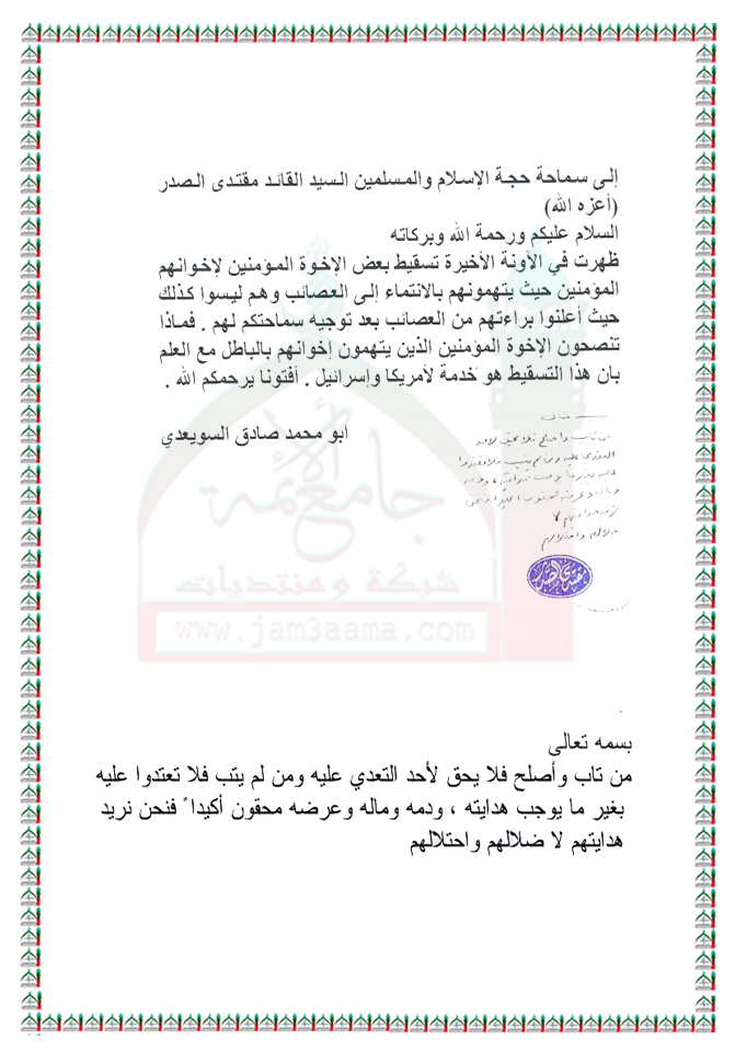 ظاهرة تسقيط من كانوا ينتمون للعصائب بعد توبتهم استفتاء السيد القائد مقتدى الصدر اعزه الله 29 - 10 - 2010