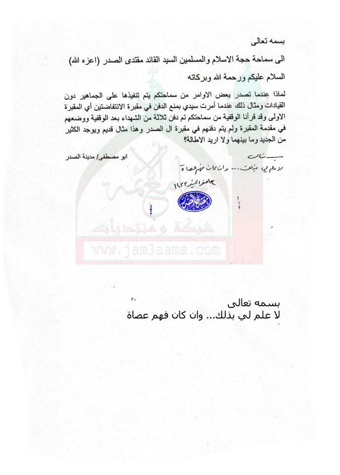 عصيان البعض من القيادات لاوامر سماحته عكس الجماهير استفتاء السيد القائد مقتدى الصدر اعزه الله 9 - 1 - 2012