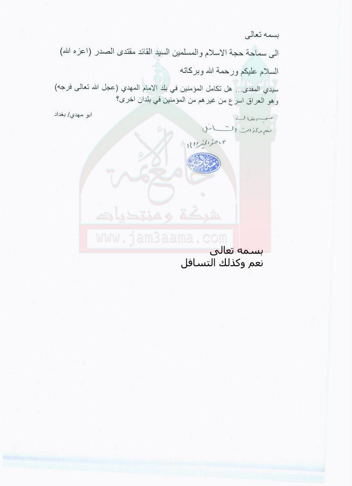سرعة التكامل والتسافل للعراقيين عن غيرهم استفتاء السيد القائد مقتدى الصدر اعزه الله 18 - 1 - 2012