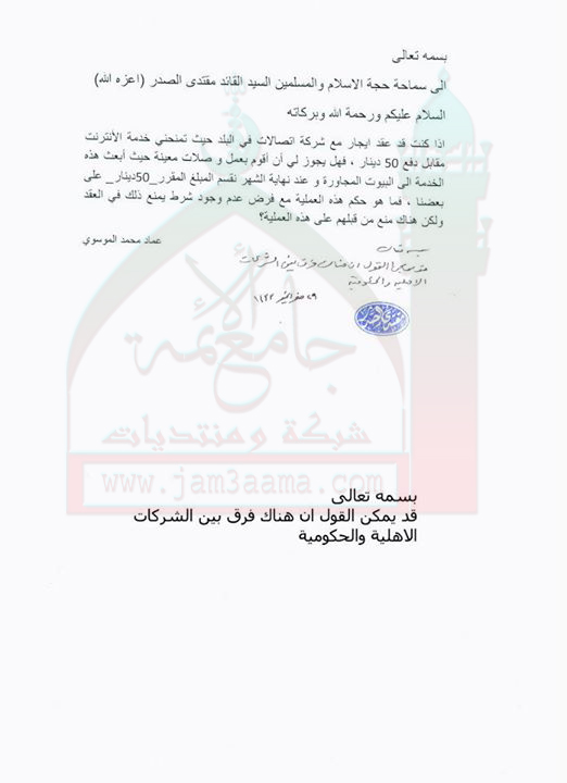 الية الاشتراك في خدمة الانترنت مع شركات الاتصال استفتاء السيد القائد مقتدى الصدر اعزه الله 24- 1 - 2012