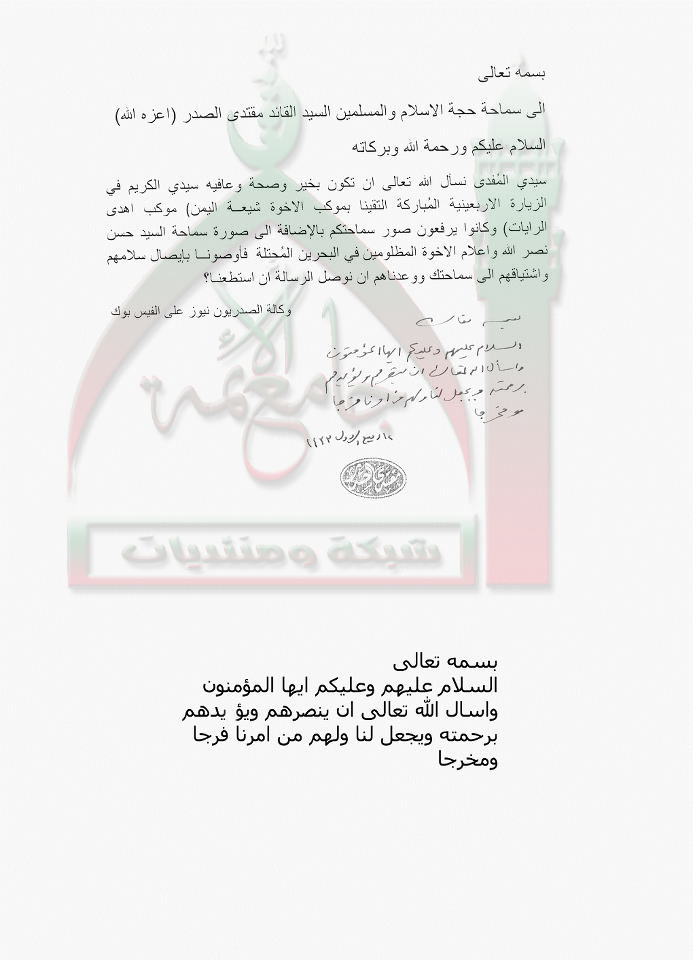 سلام من شيعة اليمن الى سماحته استفتاء للسيد القائد بتاريخ 2012/2/6