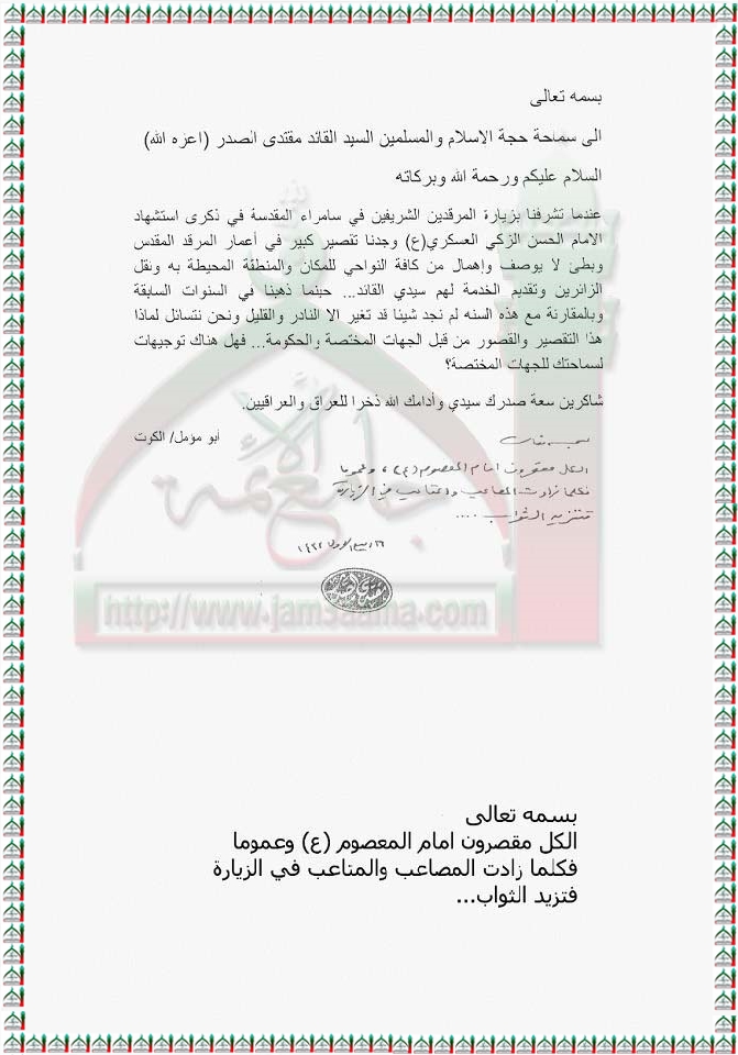 التقصير في اعمار المرقد الشريف للامامين العسكريين عليهما السلام استفتاء السيد القائد مقتدى الصدر اعزه الله 11-2-2012