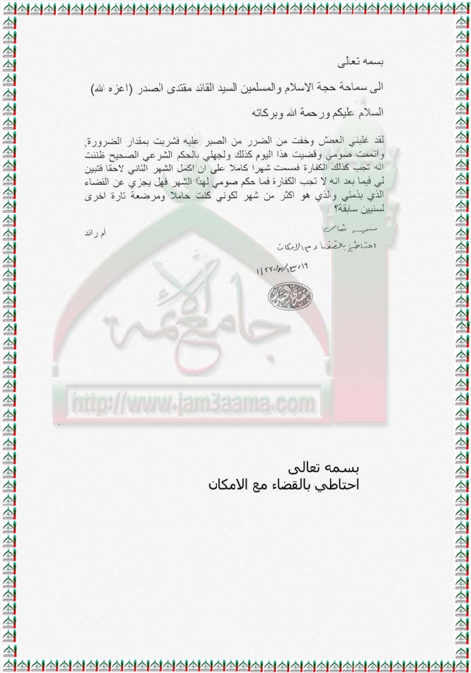 مسالة بخصوص الصوم استفتاء السيد القائد مقتدى الصدر 13-2-2012