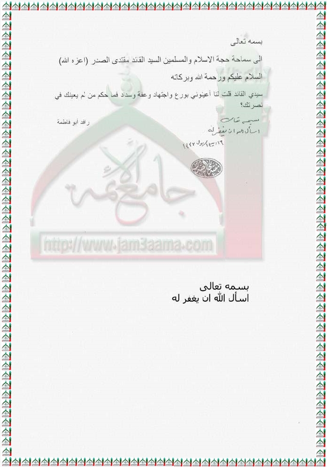 مقولة القائد اعينوني بورع واجتهاد وعفة وسداد وحكم عدم تطبيقها استفتاء السيد القائد مقتدى الصدر 13-2-2012