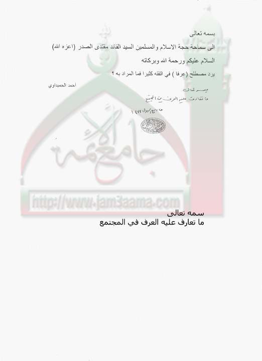 معنى المصطلح الفقهي ( عرفا ) استفتاء السيد القائد مقتدى الصدر اعزه الله 19 -2 -2012