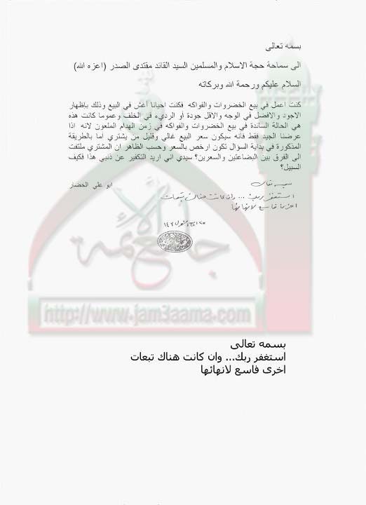 الغش في البيع استفتاء السيد القائد مقتدى الصدر اعزه الله 19-2-2012