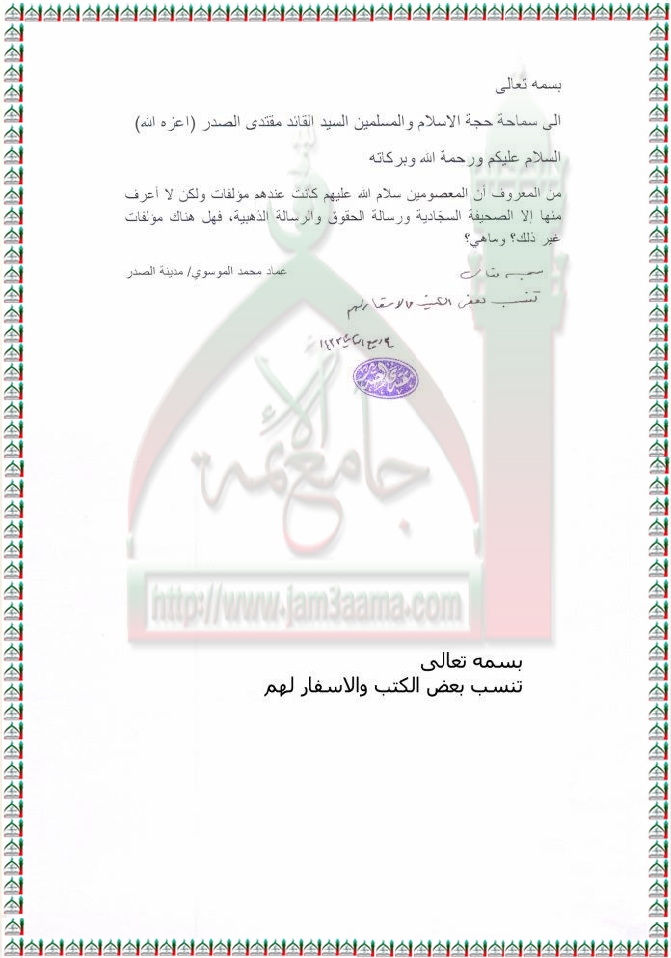 مؤلفات وكتب المعصومين ع استفتاء السيد القائد مقتدى الصدر اعزه الله 29 - 2 - 2012