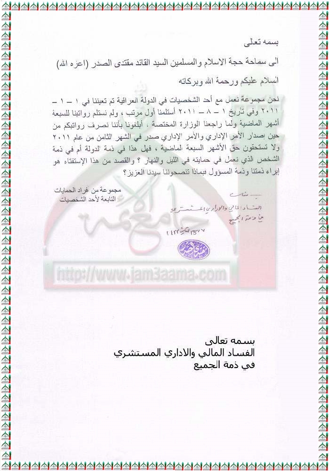 تاخر صرف رواتب حماية احد المسؤلين استفتاء السيد القائد مقتدى الصدر اعزه الله 3 - 3 - 2012