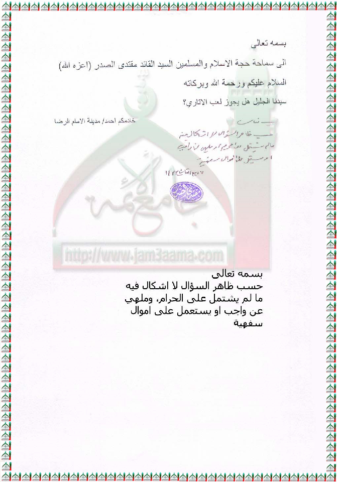 لعب الاتاري استفتاء السيد القائد مقتدى الصدر اعزه الله 3 - 3 - 2012