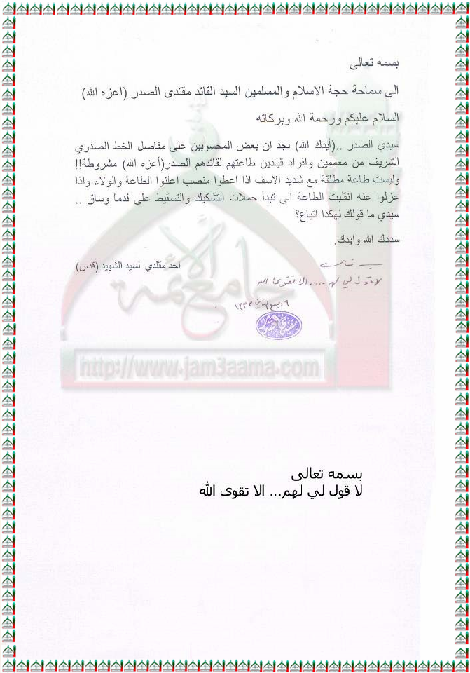 طلّاب المناصب من المحسوبين على مفاصل الخط الصدري الشريف استفتاء السيد القائد مقتدى الصدر اعزه الله 4 - 3 - 2012