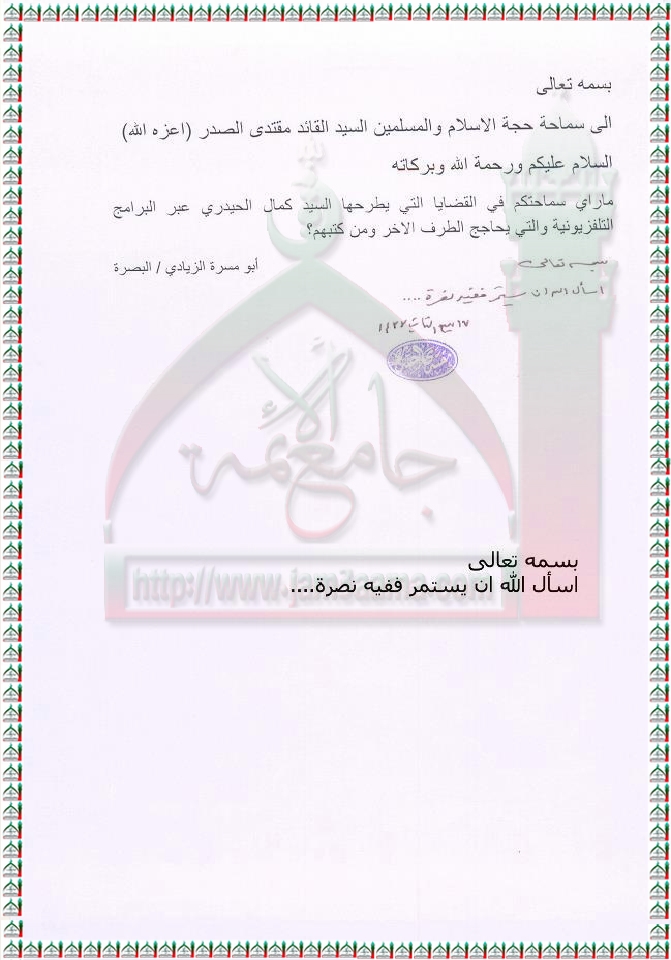 البرامج التلفزيونية للسيد كمال الحيدري استفتاء السيد القائد مقتدى الصدر اعزه الله 12- 3 - 2012