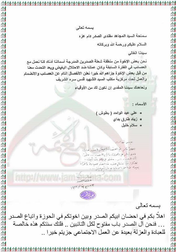 بيانات واستفتاءات السيد القائد مقتدى الصدر نصره الله