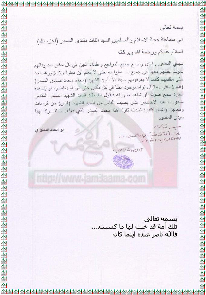 موت عمل المراجع بعد وفاتهم الا السيد الشهيد محمد الصدر قدس سره استفتاء السيد القائد مقتدى الصدر اعزه الله 19-3-2012