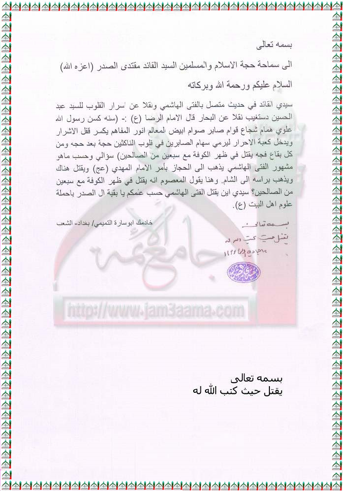 مكان قتل الفتى الهاشمي استفتاء السيد القائد مقتدى الصدر اعزه الله 6 - 4 - 2012