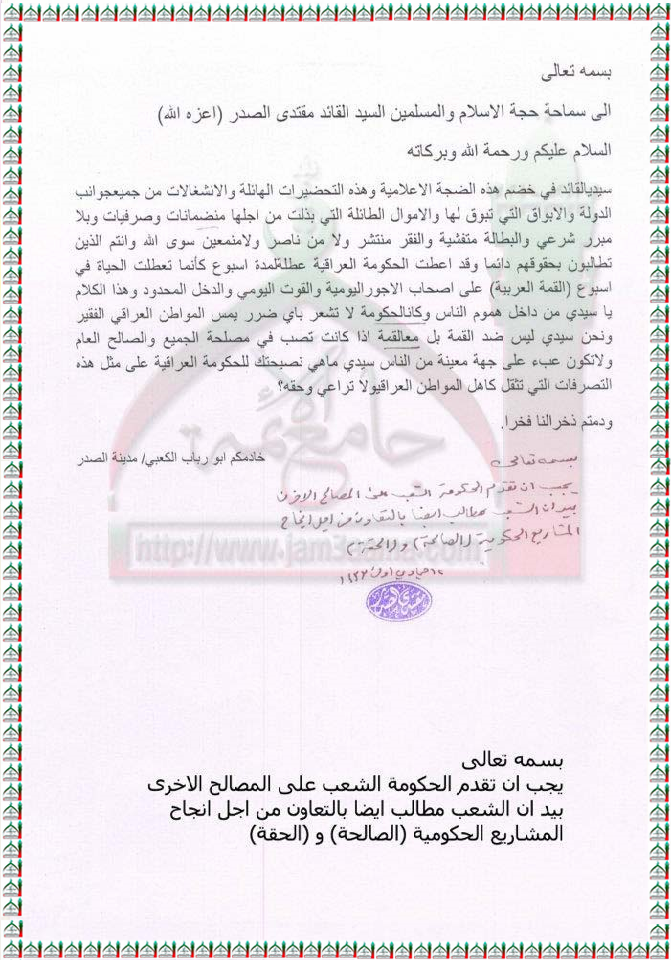معاناة الشعب بسبب القمة العربية استفتاء السيد القائد مقتدى الصدر اعزه الله 6 - 4- 2012