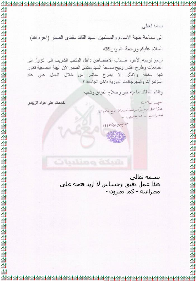 نزول اصحاب الاختصاص في المكتب الشريف الى الجامعات استفتاء السيد القائد مقتدى الصدر اعزه الله 8 - 4 - 2012