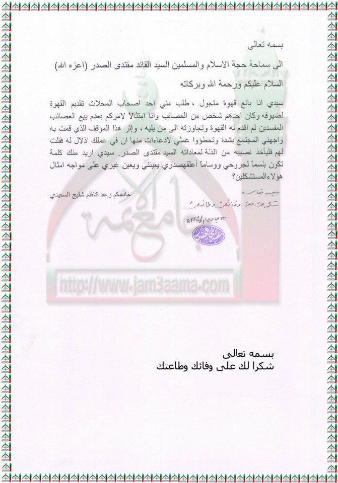التعامل الاجتماعي مع العصائب المنشقين استفتاء السيد القائد مقتدى الصدر اعزه الله 8 - 4 - 2012