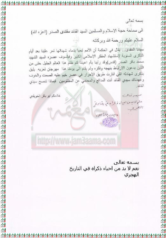 احياء ذكرى استشهاد السيد الشهيد محمد باقر الصدر (قدس)استفتاء السيد القائد مقتدى الصدر اعزه الله 9 - 4 - 2012