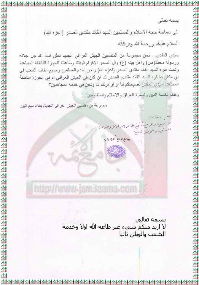 نصيحة الى المنتسبين في الجيش العراقي استفتاء السيد القائد مقتدى الصدر اعزه الله 9- 4 - 2012