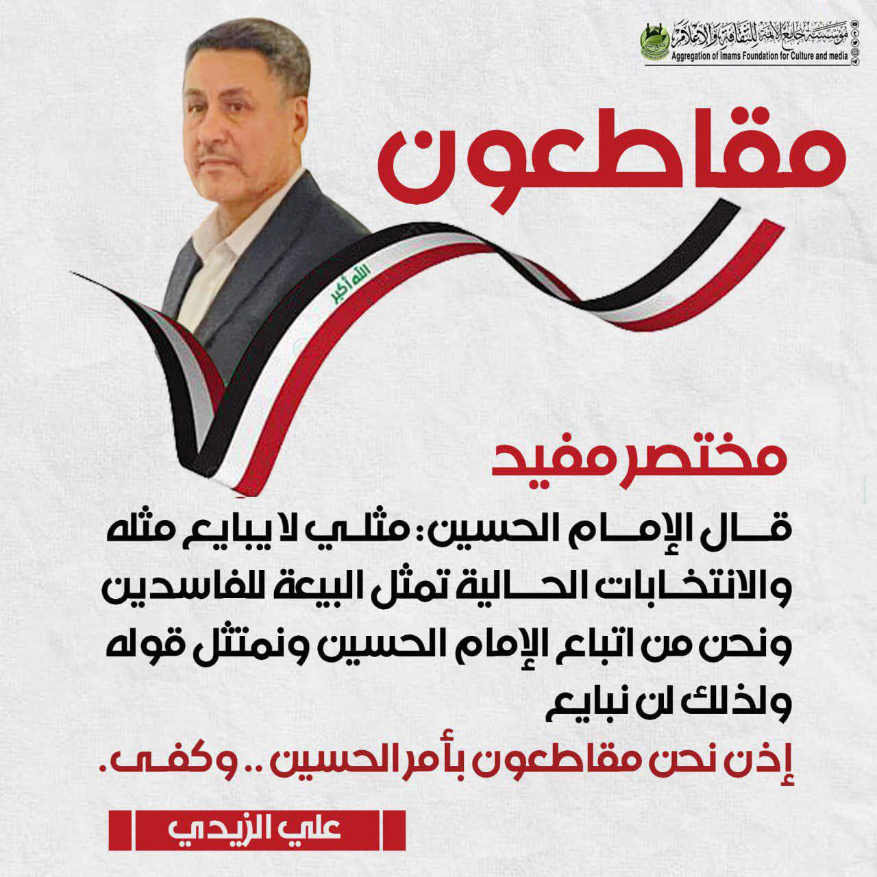 افتراضي نحن مقاطعون بأمر الحسين .. الاستاذ علي الزيدي