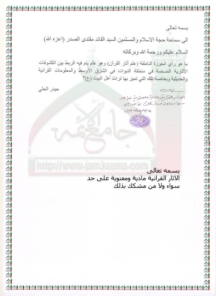 علم اثار القران استفتاء السيد القائد مقتدى الصدر اعزه الله 21 - 4 - 2012