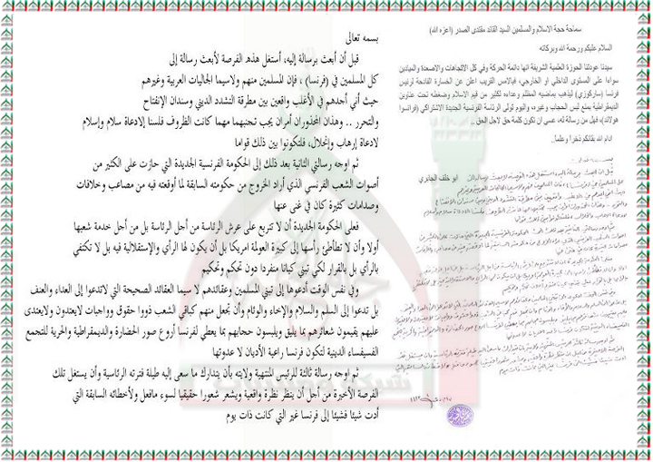 رسالة الى الرئيس الفرنسي المنتخب حديثا فرانسوا هولاند استفتاء السيد القائد مقتدى الصدر نصره الله 11 - 5 - 2012