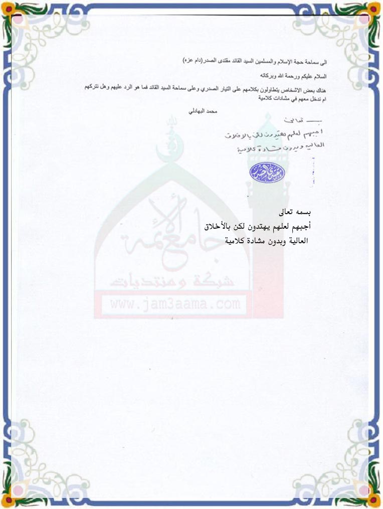 الرد على المتطاولين على التيار ورموزه(استفتاء للسيد القائد بتاريخ 4-3-2011)