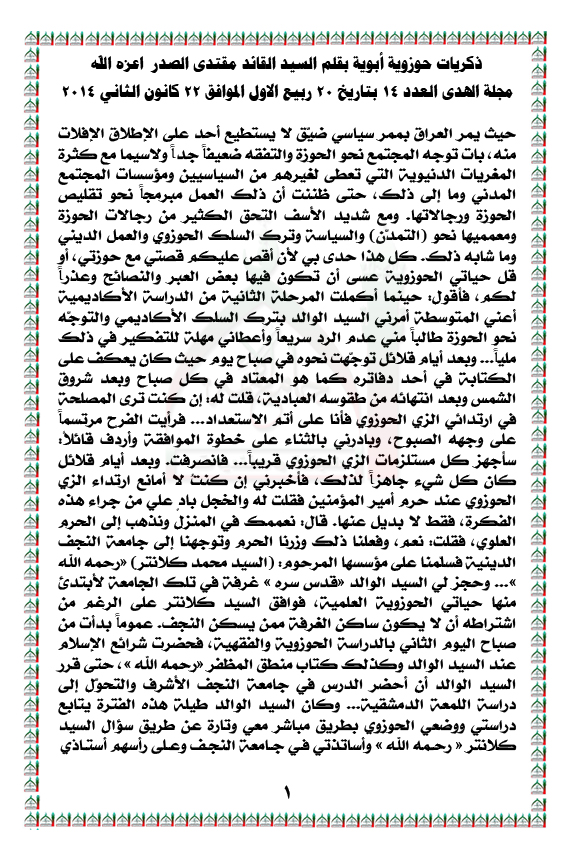 رد: ذكريات حوزوية ابوية بقلم السيد القائد مقتدى الصدر