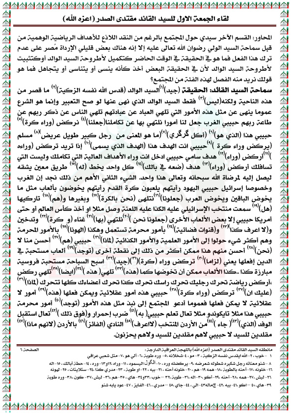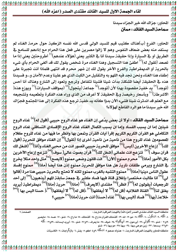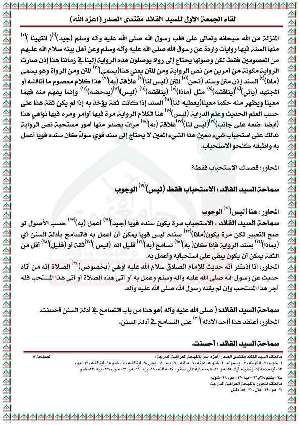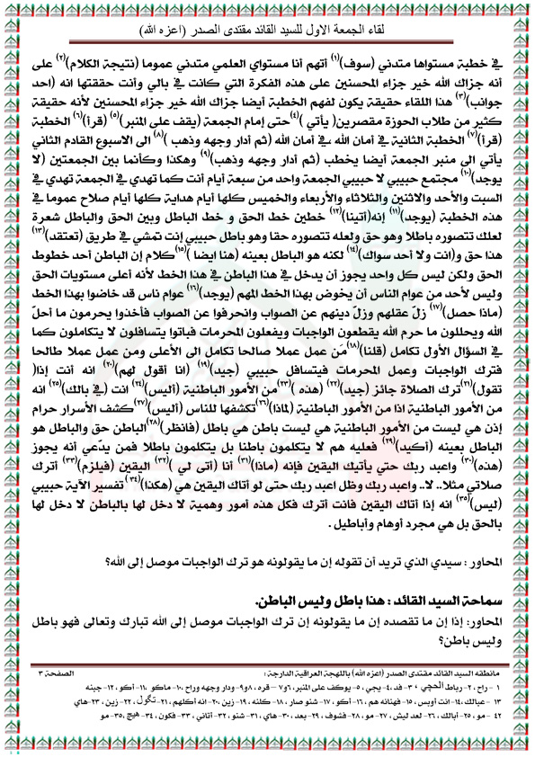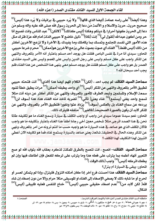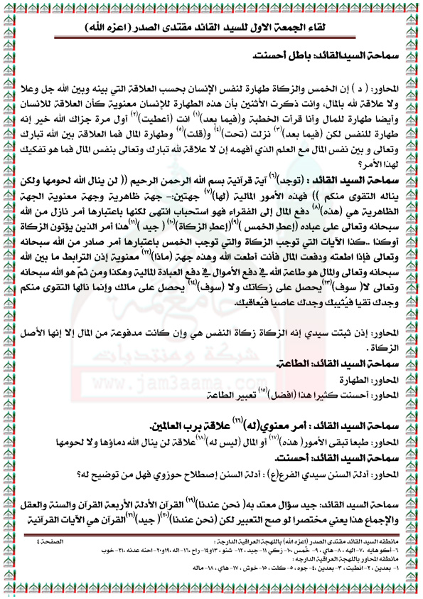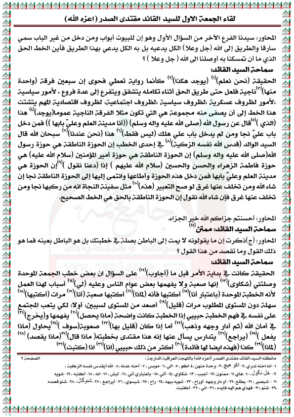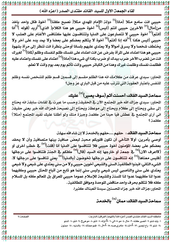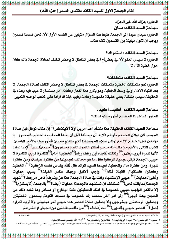 رد: لقاء الجمعه الاول مع السيد القائد مقتدى الصدر مكتوباً ( الجزء الاول )