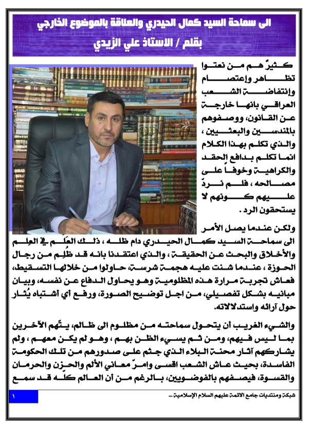 الى سماحة السيد كمال الحيدري والعلاقة بالموضوع الخارجي / بقلم الاستاذ علي الزيدي