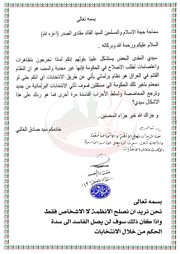 بيانات واستفتاءات السيد القائد مقتدى الصدر نصره الله