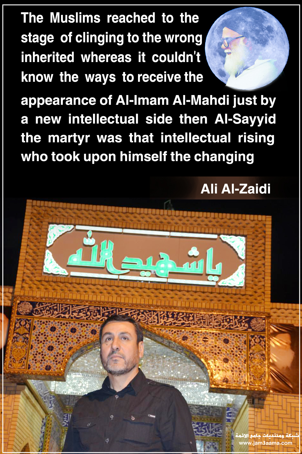 The Muslims reached to the stage of clinging to the wrong inherited The Muslims reached to the stage of clinging to the wrong inherited whereas it couldn’t know the ways to receive the appearance of Al-Imam Al-Mahdi just by a new intellectual side then Al-Sayyid the martyr was that intellectual rising who took upon himself the changing Ali Al-Zaidi ــــــــــــــــــــــــ http://www.jam3aama.com/up/do.php?img=8432 |