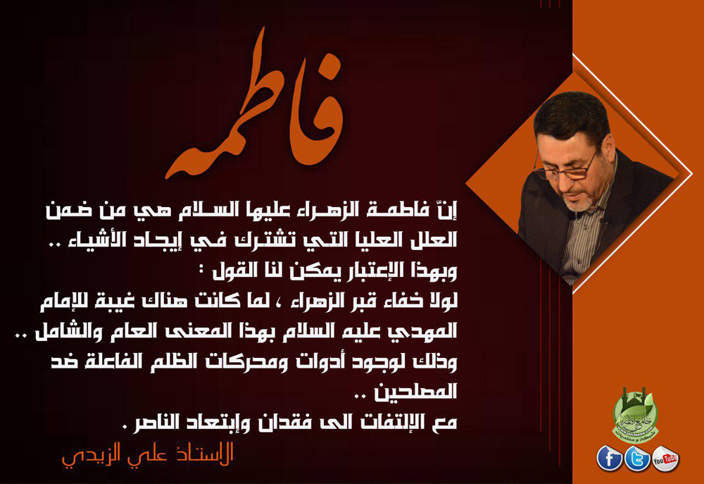 إنّ فاطمة الزهراء عليها السلام هي من ضمن العلل العليا .. الاستاذ الفاضل علي الزيدي