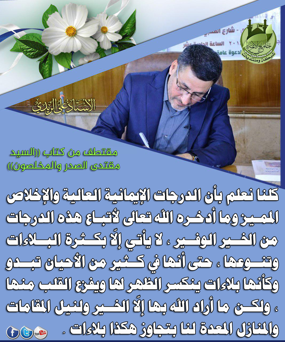 رد: الدرجات الإيمانية العالية والإخلاص المميز لا يأتي إلّا بكثرة البلاءات وتنوعها .. الاستاذ الفاضل علي الزيدي
