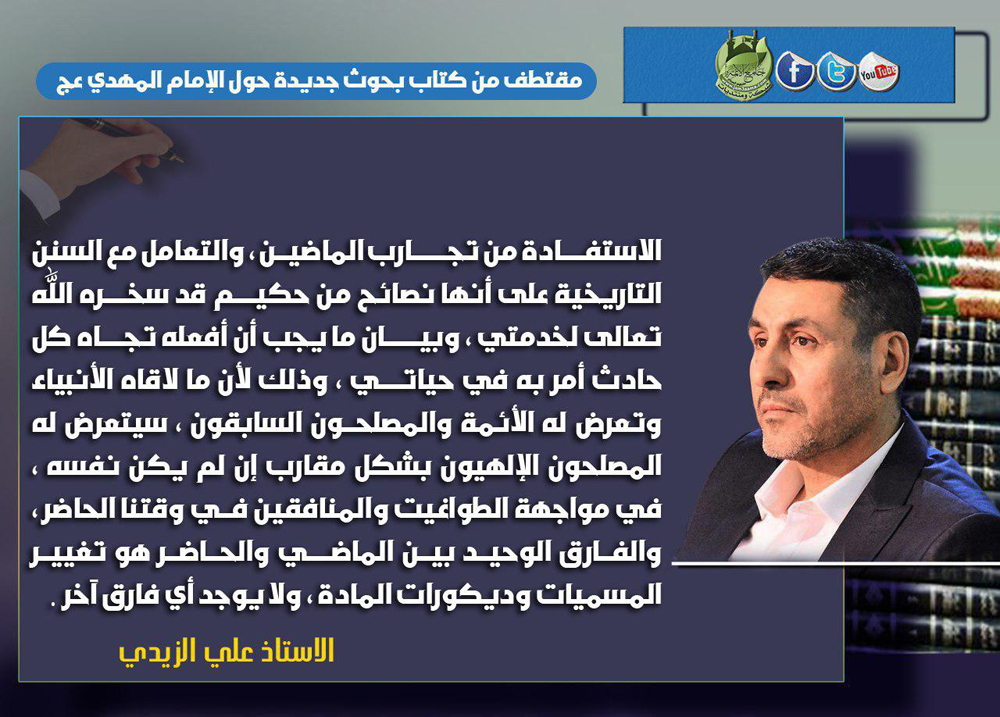 الاستفادة من تجارب الماضين ، والتعامل مع السنن التاريخية على أنها نصائح من حكيم قد سخره الله تعالى لخدمتي ، وبيان ما يجب أن أفعله تجاه كل حادث أمر به في حياتي ، وذلك لأن ما لاقاه الأنبياء وتعرض له الأئمة والمصلحون السابقون ، سيتعرض له المصلحون الإلهيون بشكل مقارب إن لم يكن نفسه ، في مواجهة الطواغيت والمنافقين في وقتنا الحاضر ، والفارق الوحيد بين الماضي والحاضر هو تغيير المسميات وديكورات المادة ، ولا يوجد أي فارق آخر. . مقتطف من كتاب بحوث جديدة حول الإمام المهدي عج للمفكر والباحث الاستاذ علي الزيدي #الاستاذ_علي_الزيدي http://www.jam3aama.com/up/do.php?img=9754 |