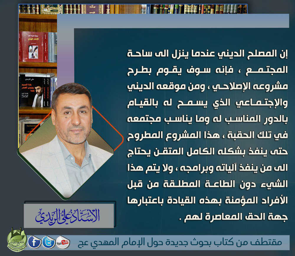 إن المصلح الديني عندما ينزل الى ساحة المجتمع .. الاستاذ الفاضل علي الزيدي