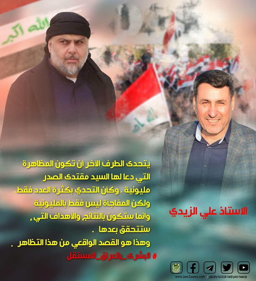 يتحدى الطرف الآخر أن تكون المظاهرة التي دعا لها السيد مقتدى الصدر مليونية . وكأن التحدي بكثرة العدد فقط . ولكن المفاجأة ليس فقط بالمليونية ، وإنما ستكون بالنتائج والأهداف التي ستتحقق بعدها . وهذا هو القصد الواقعي من هذا التظاهر . #البشرى_بالعراق_المستقل الاستاذ علي الزيدي |