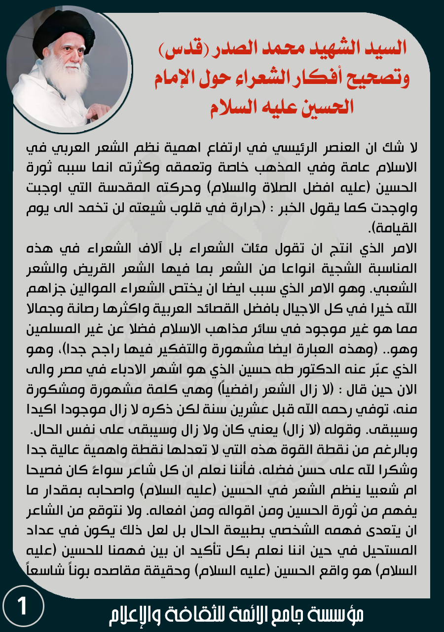 السيد الشهيد محمد الصدر (قدس) وتصحيح أفكار الشعراء حول الإمام الحسين عليه السلام