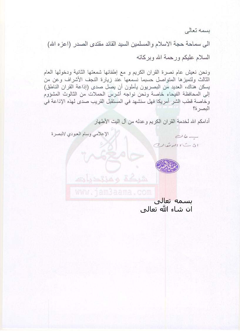 بث اذاعة (القران الناطق)(استفتاء للسيد القائد بتاريخ10-7-2011)