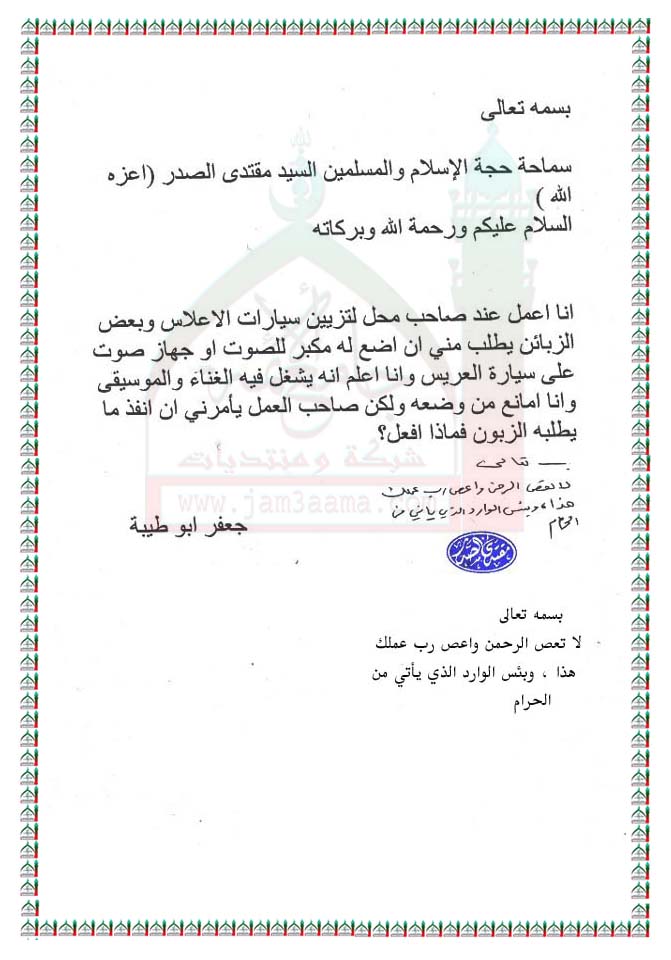 العمل عند صاحب محل لتزيين سيارات الاعراس يستعمل الموسيقى استفتاء للسيد القائد بتاريخ 13-12-2010