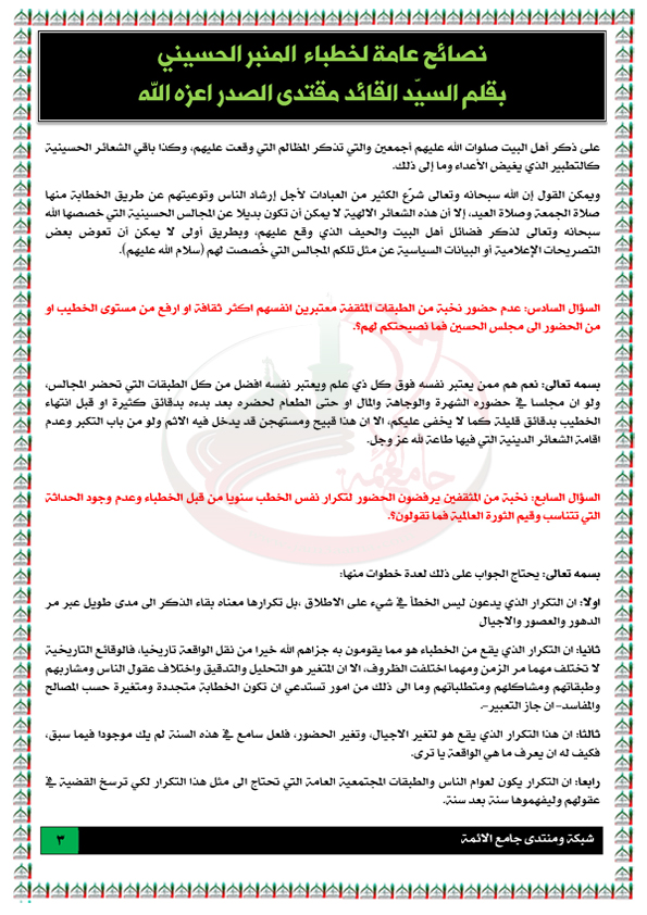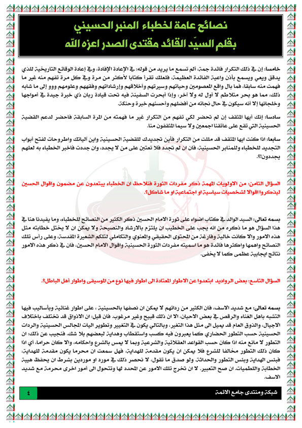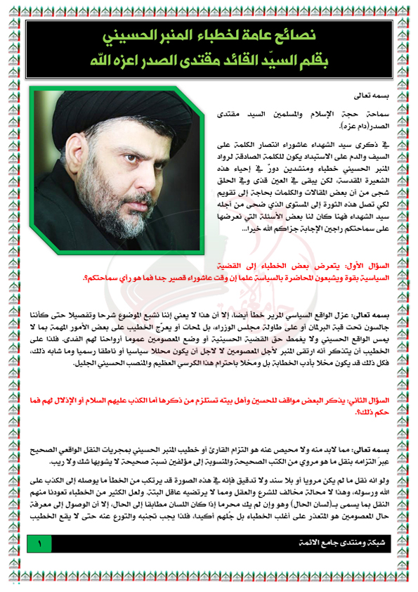 رد: نصائح عامة للخطباء بقلم السيّد القائد مقتدى الصدر 1432هج-1
