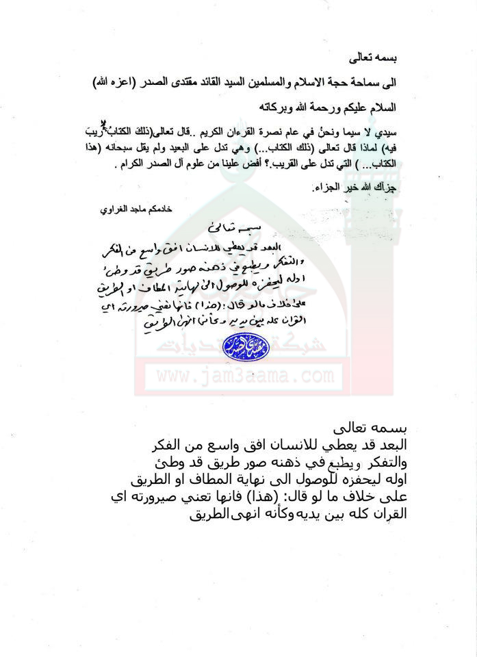 الاية القرانية "ذلك الكتاب لا ريب فيه" استفتاء للسيد القائد مقتدى الصدر اعزه الله 20-10-2011