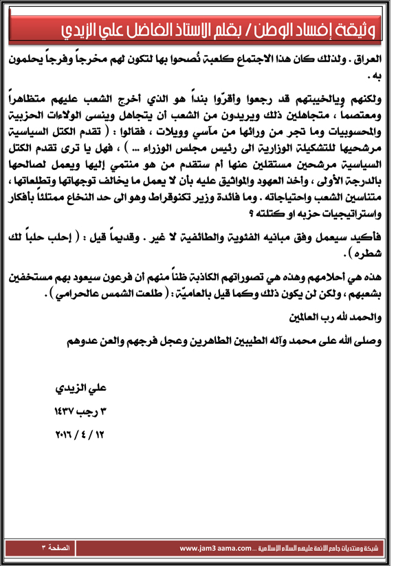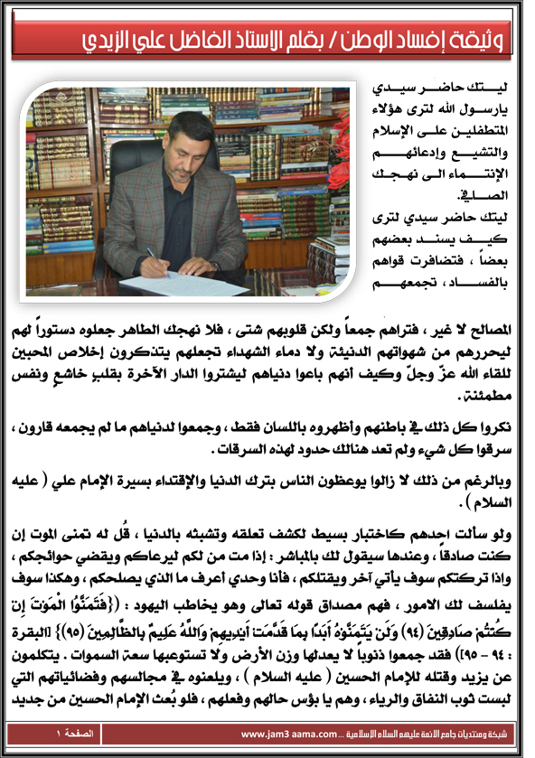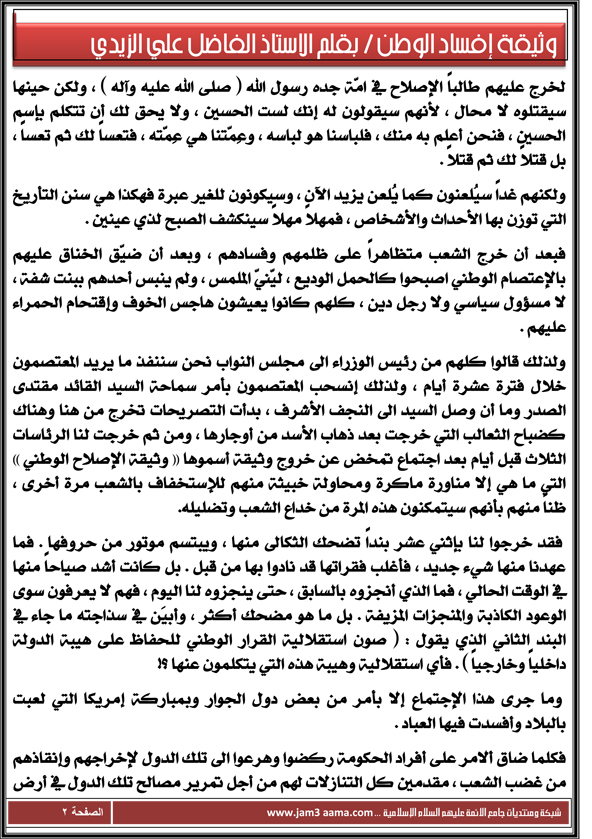 رد: وثيقة إفساد الوطن / بقلم الاستاذ الفاضل علي الزيدي
