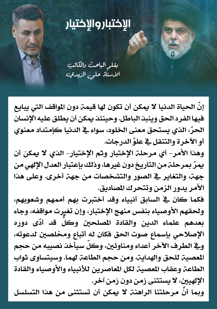 رد: الإختبار والإختيار / بقلم الباحث والكاتب الأستاذ علي الزيدي